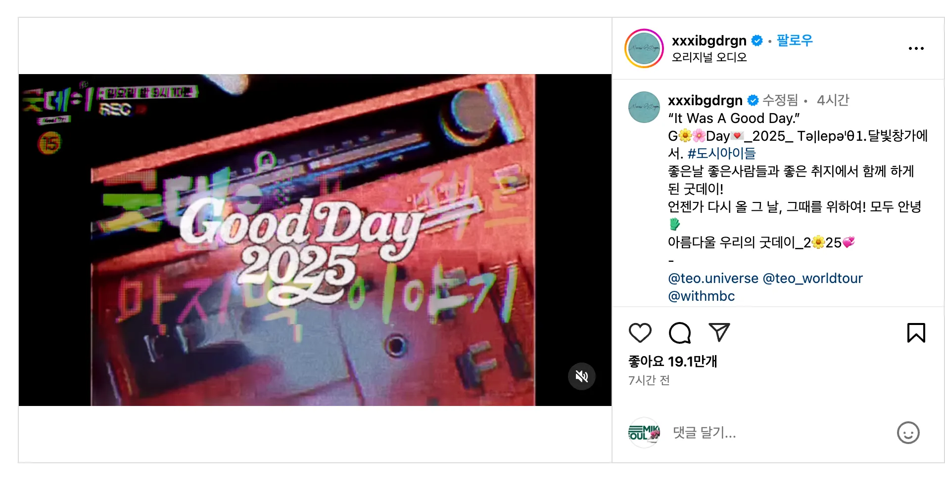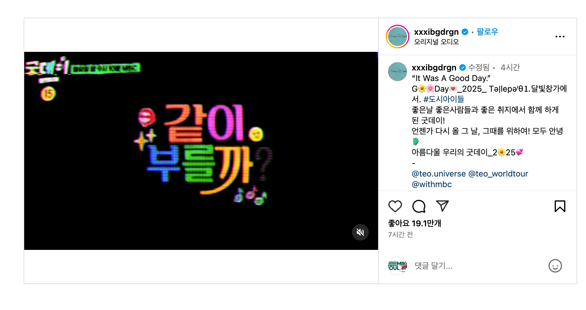 "지용이형, 그런데 굿데이 장르가 뭐에요?"
