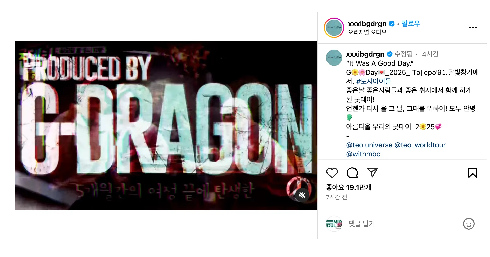 짧지만 강렬한 그 몇 초가 GD의 피드에서