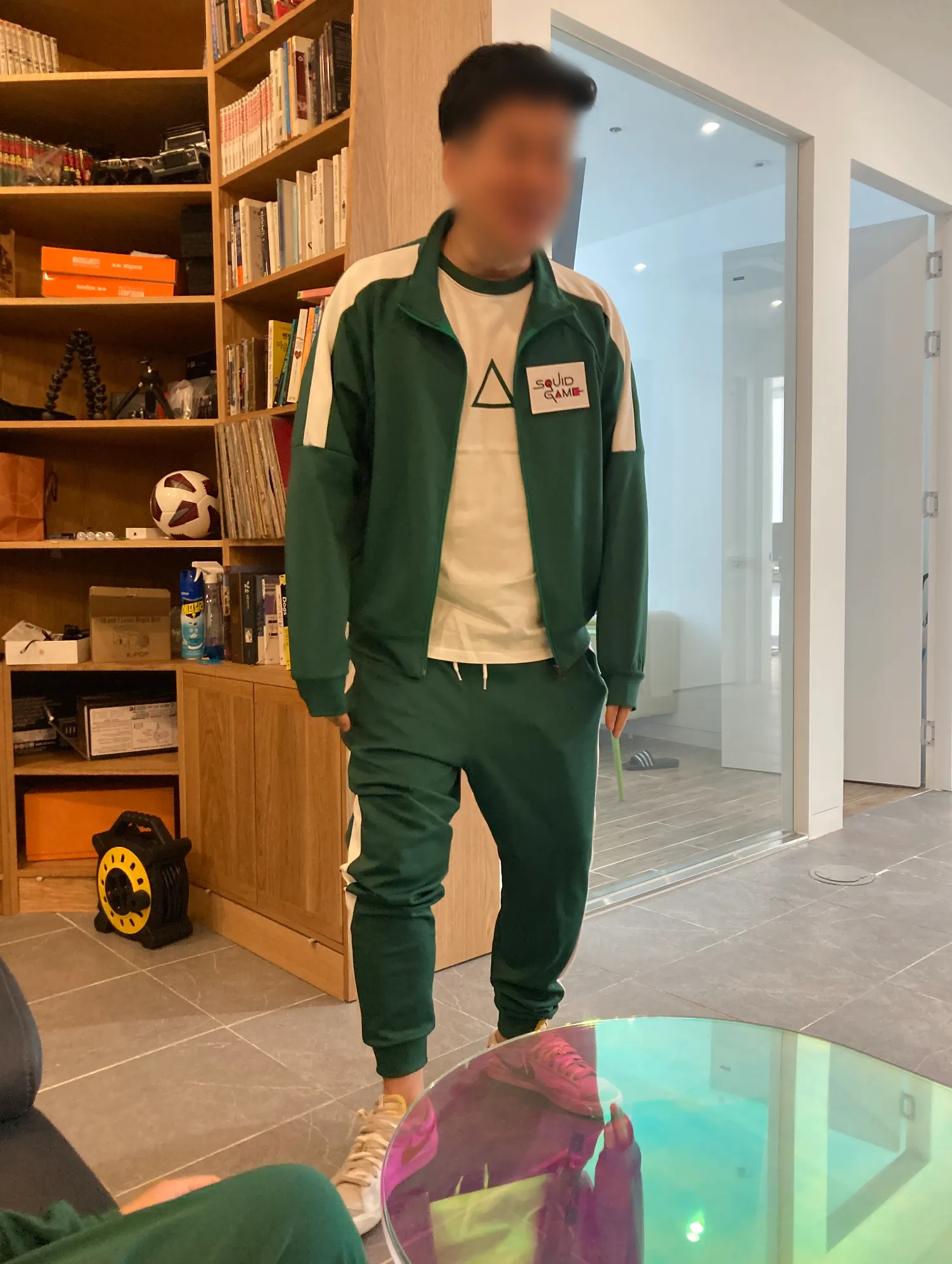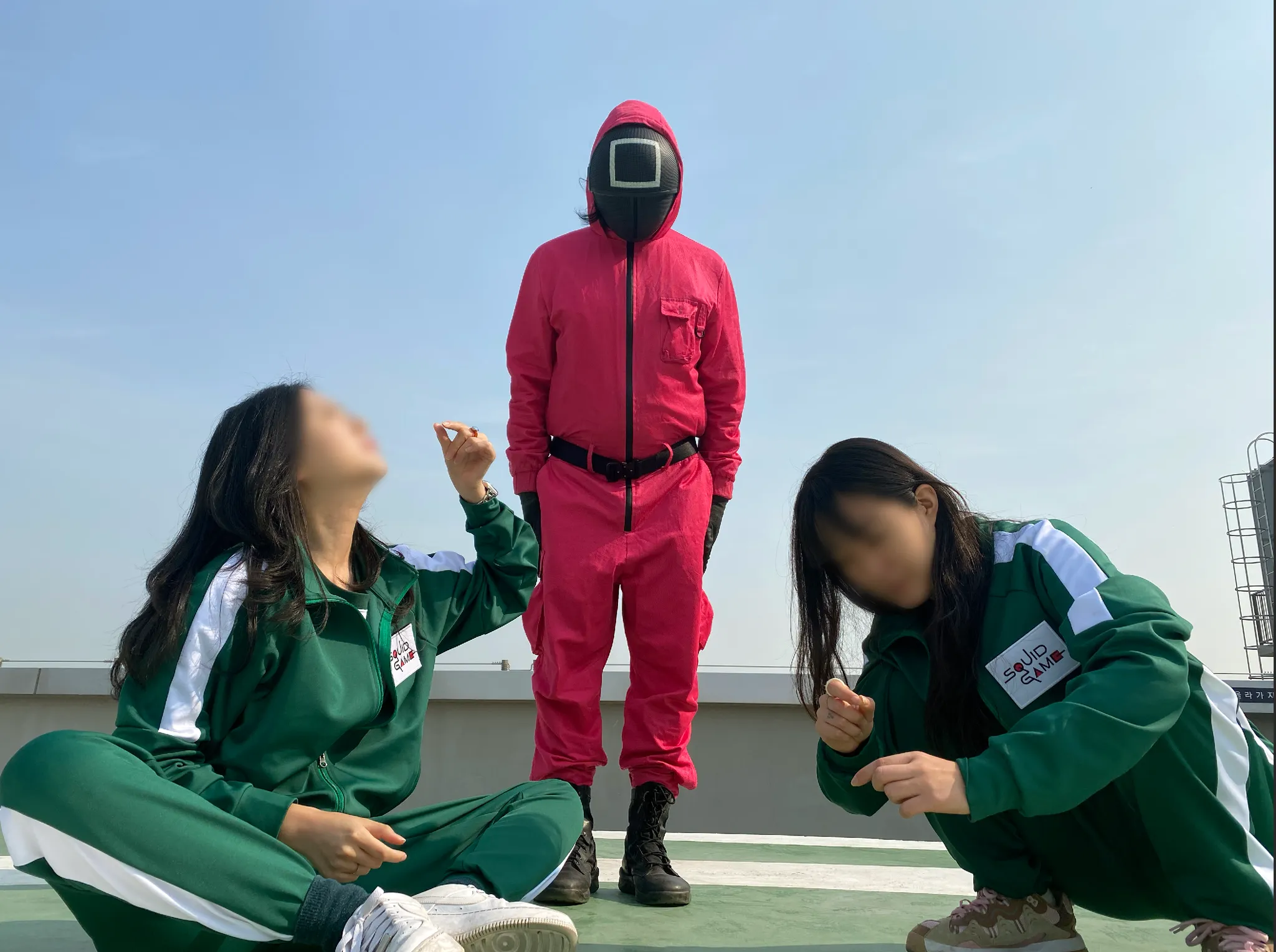 초록 트레이닝복, 핑크 수트, 가면, 진행요원 유니폼 등을 직접 제공받았습니다.
